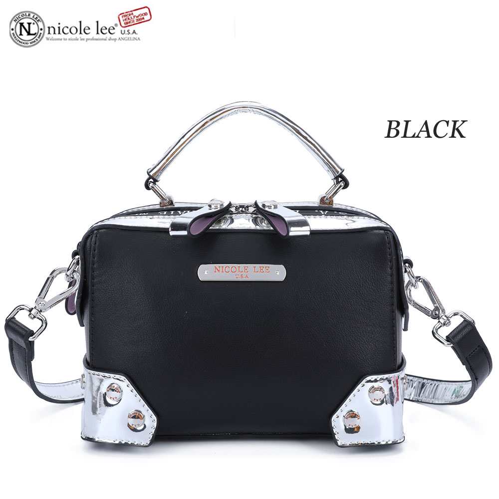可愛いサイズのミニボストンバッグ ブラック×ミラー モードな雰囲気でお洒落です スモールサイズですが存在感あります 艶やかに光り輝くカラー サッと持ちやすい太めのハンドル メタルスタッズやロゴがアクセント 2つに分かれた便利な収納 内側は可愛い星柄です ・ファスナー式開閉 ・ショルダー紐付き はんかちやミニ財布、携帯や小物など収納可能 サイズ 横 約20.3cm 縦 約14cm マチ幅 約11.4cm 重さ 約460g 素材 ビーガンレザー・ポリウレタン 裏地ポリエステル100% 付属品 こちらのモデルにはかわいらしいピンク色のオリジナル保存袋付き 保証 当店はNicole Lee JAPAN 日本正規代理店です。